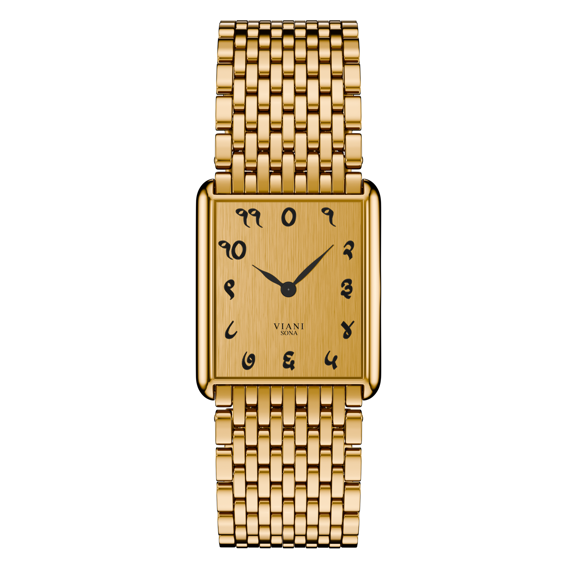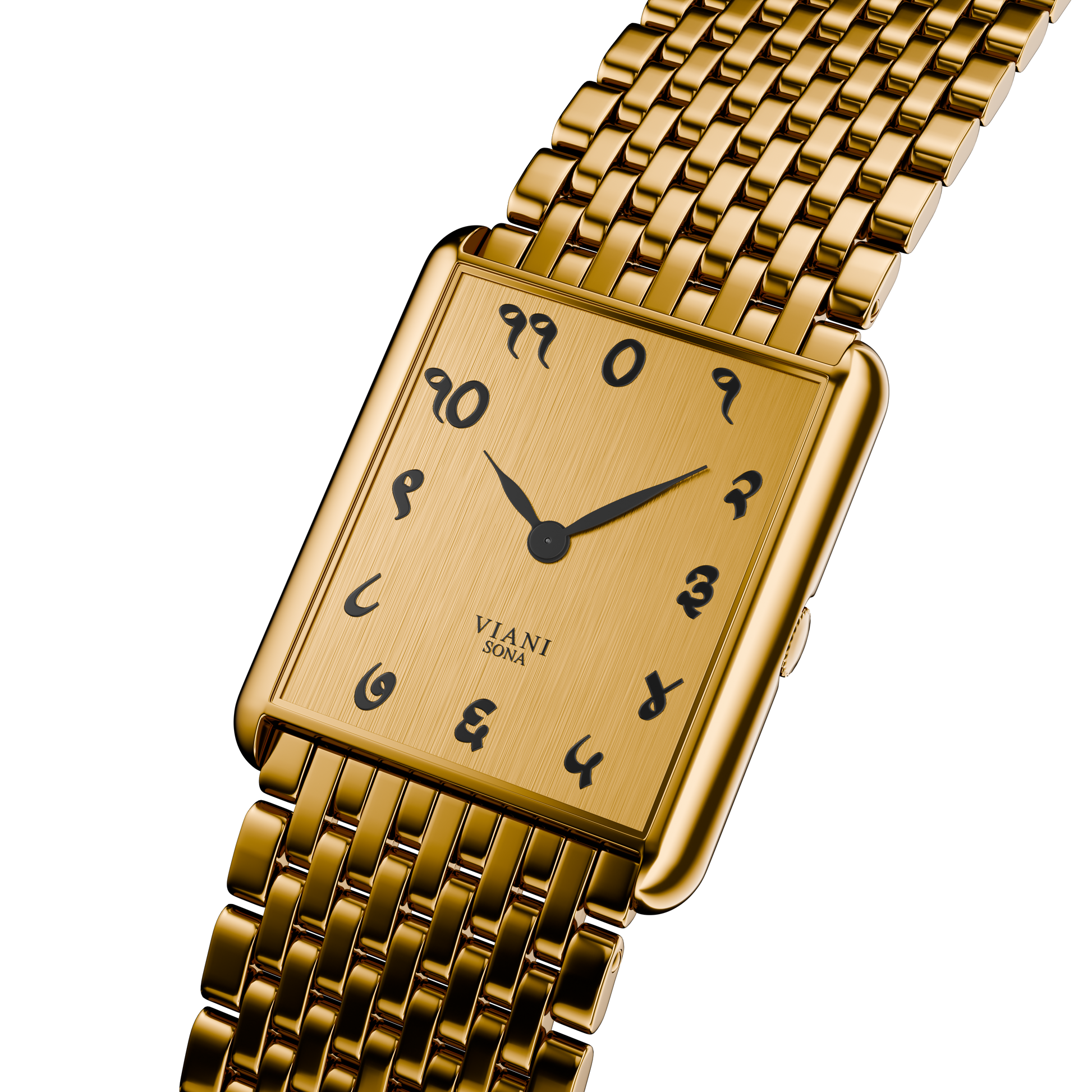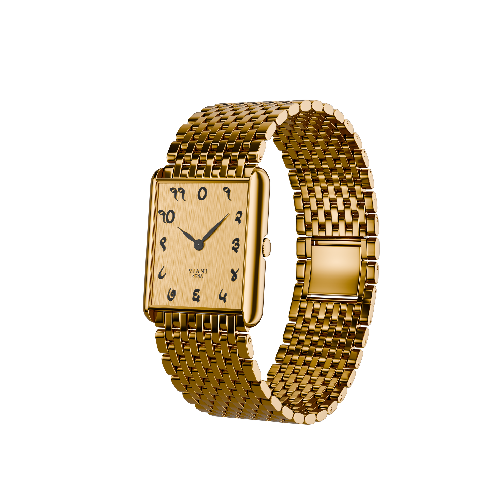 - Dial: Vertically Brushed 18k Gold EP on 316L SS