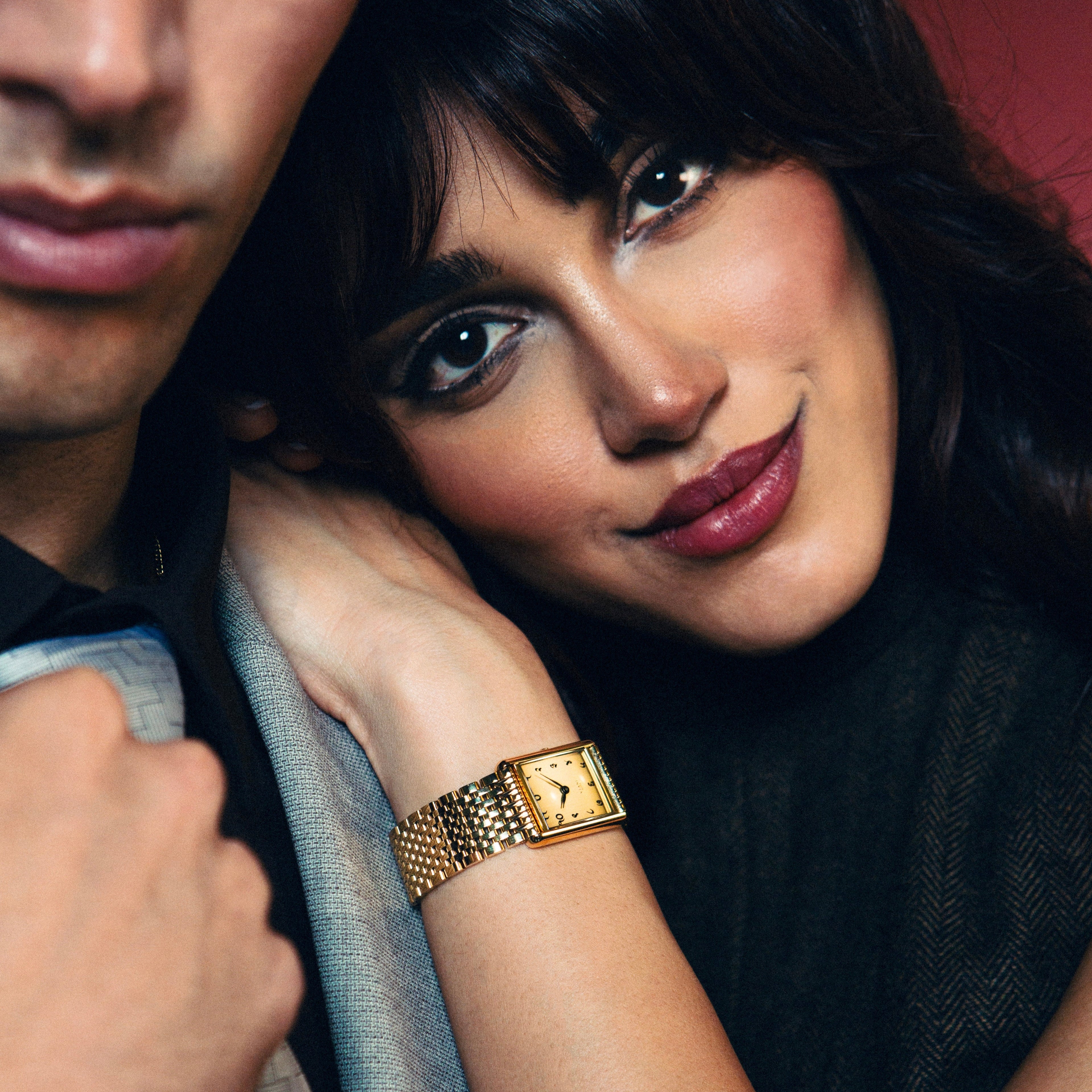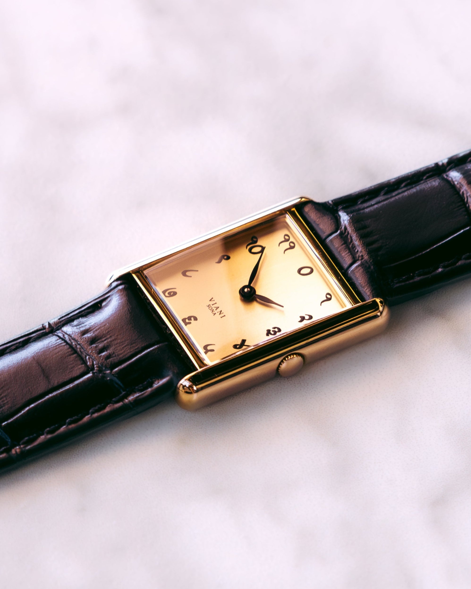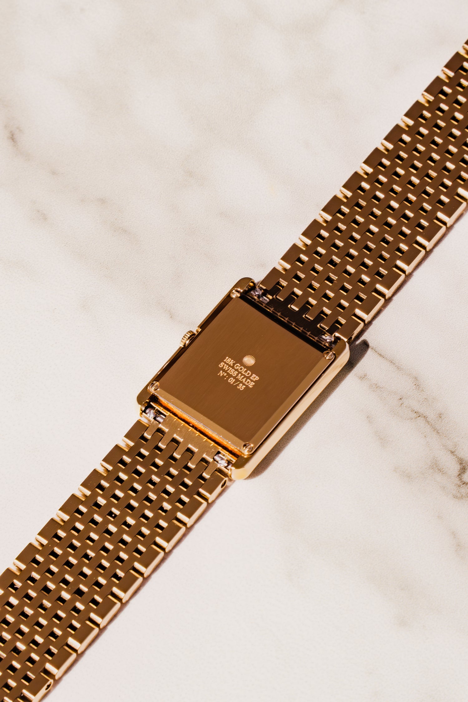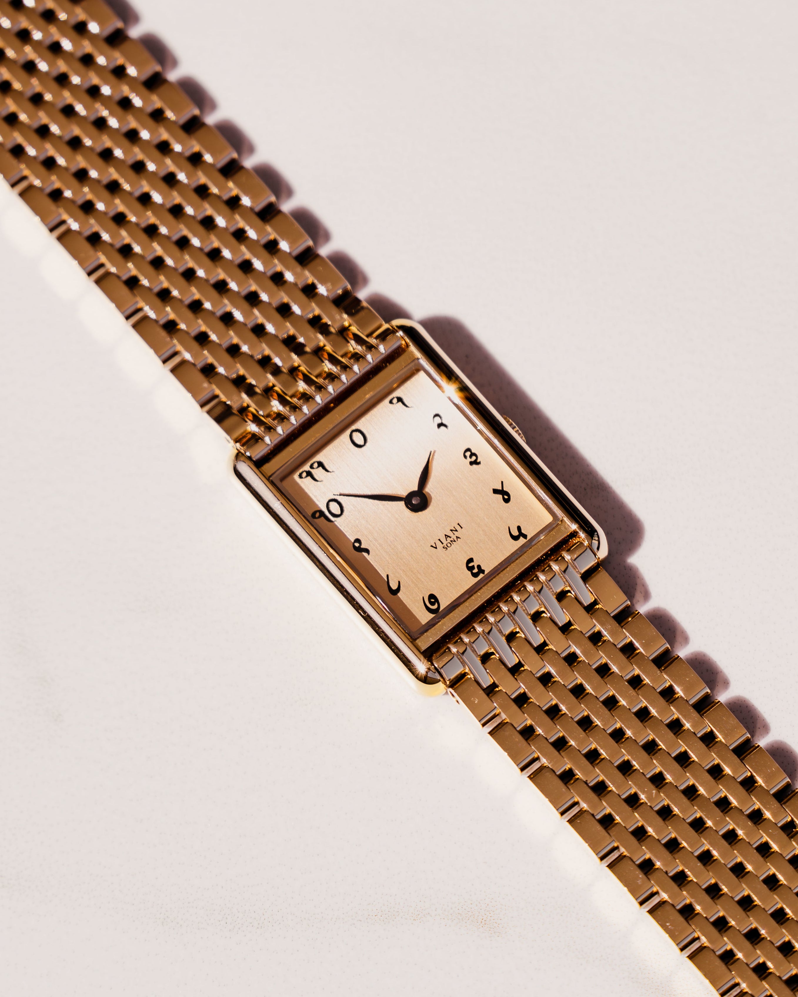 - Dial: Vertically Brushed 18k Gold EP on 316L SS