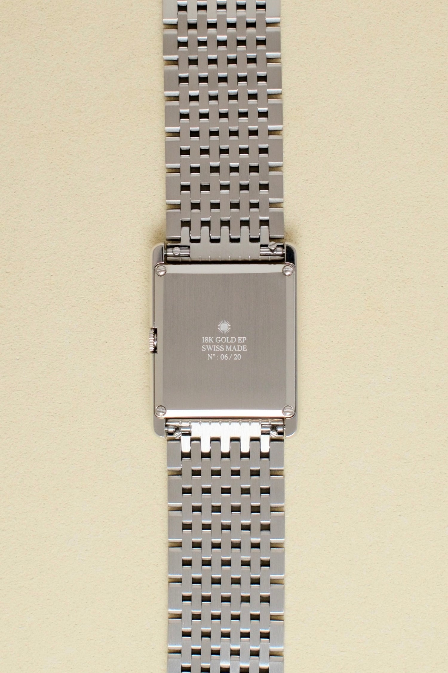 - Dial: Matte White with a sculpted rectangular recess